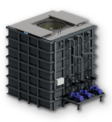 Umwälzpumpen oder Impeller sorgen für die nötige Strömunsführung; die Umwälzung kann vertikal oder horizontal erfolgen.